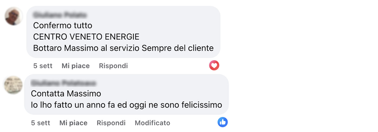 Guarda cosa dicono i nostri clienti di Massimo e dei nostri responsabili degli sportelli (questi commenti sono veri, controlla pure sulla pagina Facebook di Centro Veneto Energie).
